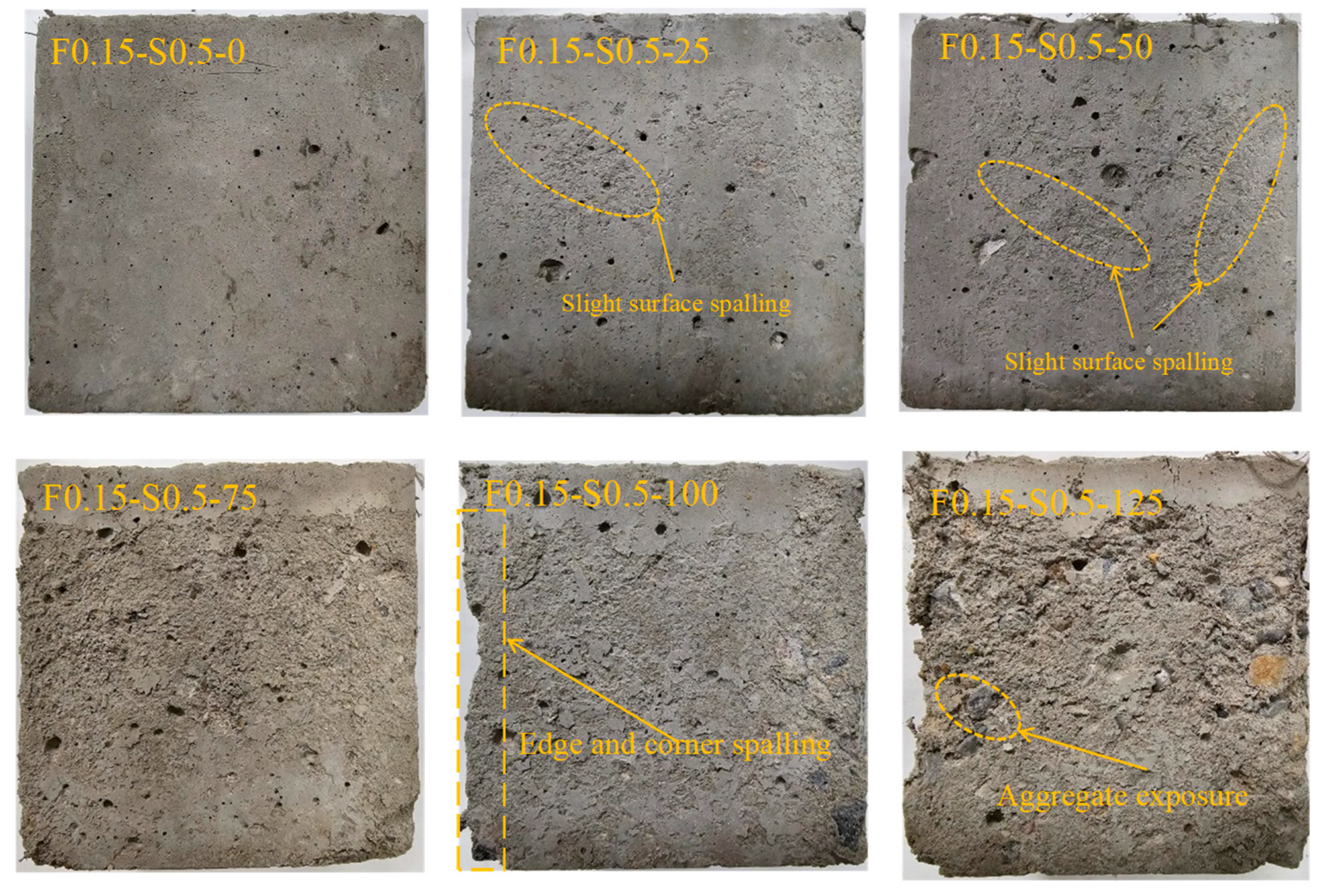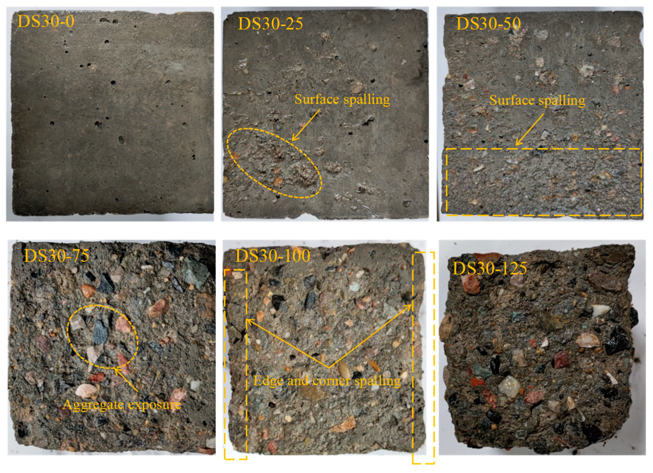 The mass loss rate calculation formula for DSRAC post-freeze–thaw cycles is given in Equation (1).