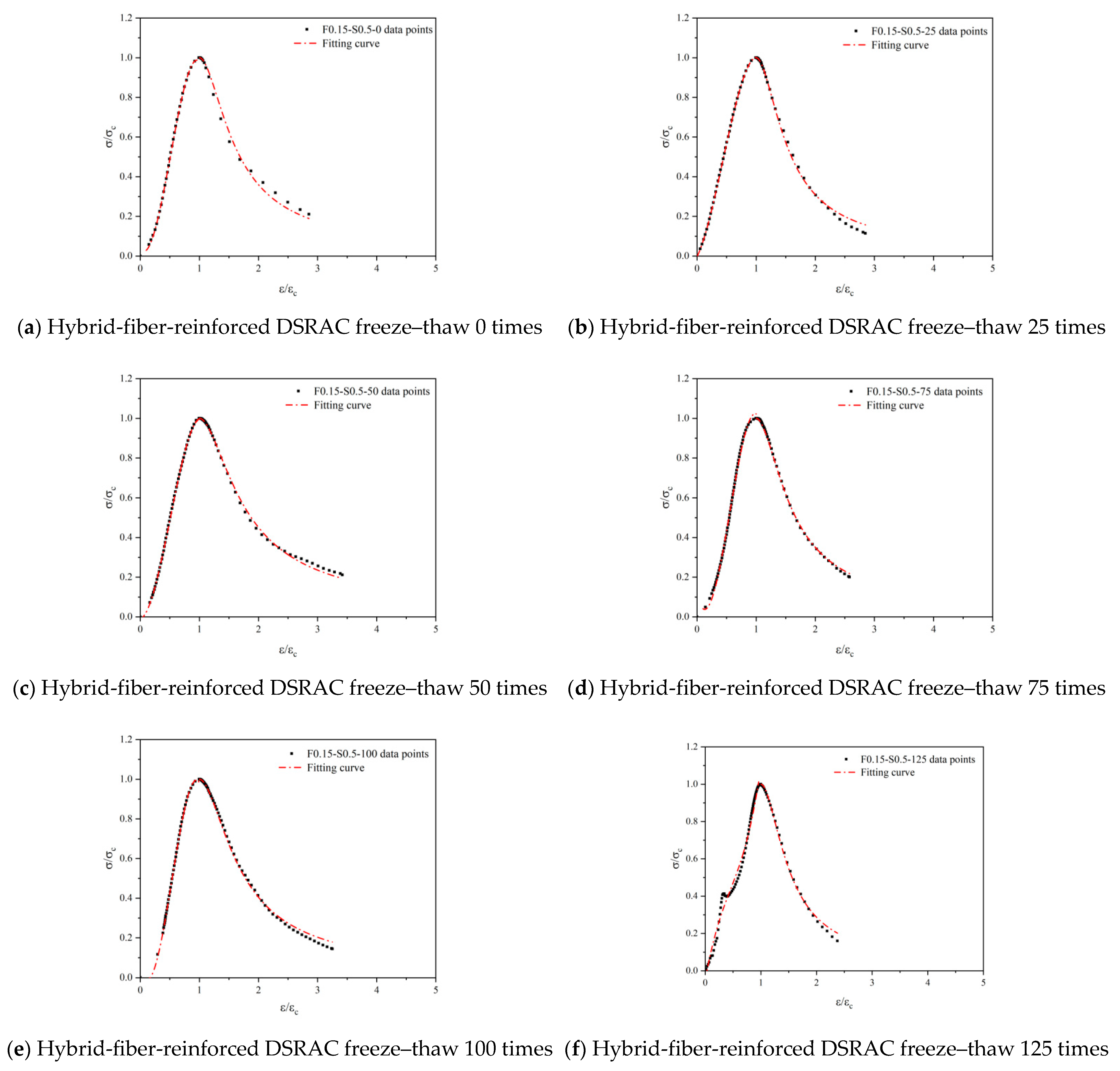 Establish freeze–thaw damage models built upon the exponential function and Aas-Jakobsen function, and characterize the stress–strain relationship evolution using Guo’s constitutive model;