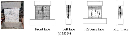 Figure 7 illustrates the failure patterns and crack distributions of M2.5 series wall specimens subjected to compressive loading. Due to space constraints, the results for the M5 and M7.5 mortar grade specimen groups are presented in