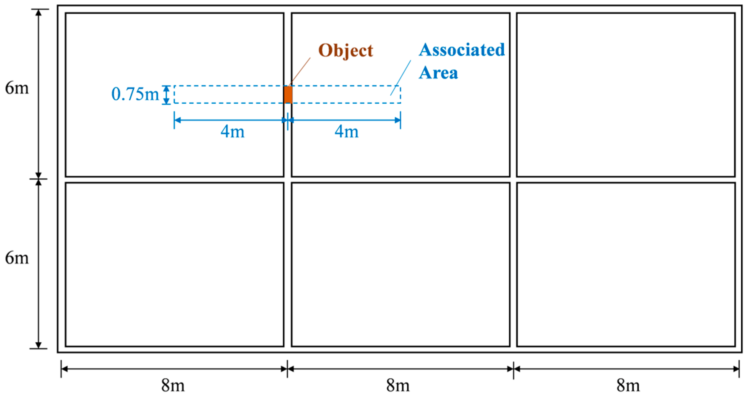 The preload was calculated as follows. A masonry structure with three bays in the longitudinal direction and two bays in the transverse direction was selected as the test prototype for the application of construction loads. The dimensions of each bay were 8 m in the longitudinal direction and 6 m in the transverse direction, as illustrated in