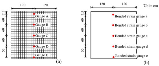 Layout of (a) embedded strain gauges and (b) bonded strain gauges.