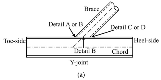- Wang, K. Stress Concentration Factors and Fatigue Behavior of Welded T-Joints with a CHS Brace and a CFCHS Chord. Ph.D. Thesis, Tongji University, Shanghai, China, 2008. [Google Scholar]