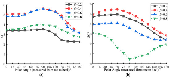 4.1. Influence of β on SCFs at Key Hot Spot Locations