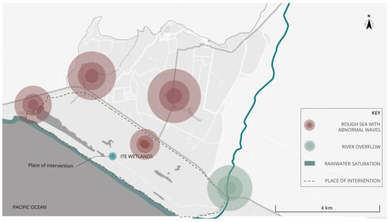 As shown in Figure 11, the Ite wetlands, in addition to climatic changes, are exposed to other factors specific to their location. On the border with the sea, they are exposed to the impact of the sea due to anomalous waves that cause erosion and flooding in the low coastal area and occur constantly.