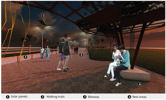 The Laguna Carpintero Wetland Revitalization and Conservation Project also follows ecological recovery strategies [46]. In this case, urban expansion is not encouraged; rather, the aim is to create a safer environment for local and migratory wildlife, with architecture adapted to the territory to preserve existing habitats. The project includes stormwater management systems and biofilters, as well as the creation of buffer zones through vegetation, ensuring long-term sustainability and ecosystem health via environmental monitoring technologies.