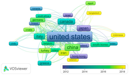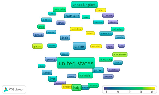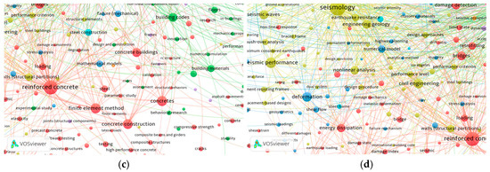 - In the Category I: co-authorship—countries (case 3) collaboration network analysis, it is evident that the United States holds an absolute core position in the field of performance-based design research globally and has connections with other countries. The proportion of publications authored by US scholars is as high as 1076 documents, with a total citation count of as high as 18,137. In addition to that, in Category II: co-occurrence—all keywords (case 1), co-occurrence–author keywords (case 2), and co-occurrence–index keywords (case 3) analyses, it was found that the keyword ‘performance-based design’ is the most-frequently used keyword in most scholarly articles in all three analyses’ results. Similarly, the Category III: citation—countries (case 4) analysis result indicated that the US has the greatest citation total link strength with other countries and the UK is in the second position in this category;