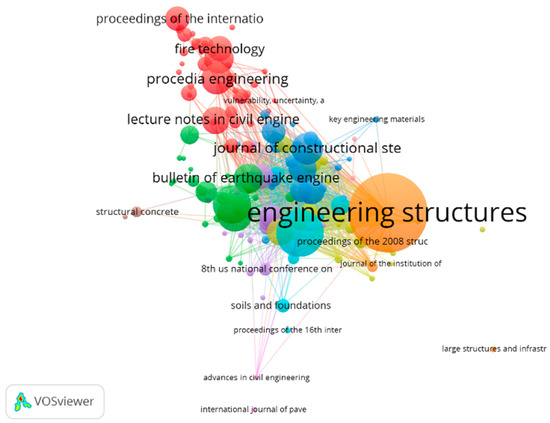 - In the citation analysis, the most-productive journals on PBD research were identified, and the Journal of Engineering Structures was found to be the most productive journal, with a total publication number of 1569 articles and a total citation count of 52,429. The most-cited article was Novel visual crack width measurement based on backbone double-scale features for improved detection automation, which was published by Elsevier Ltd. In the same way, Journal of Earthquake Engineering and Structural Dynamics was found to be in the second place in this category, and the most-cited article was Reinforced moment-resisting glulam bolted connection with coupled long steel rod with screwheads for modern timber frame structures, published by John Wiley and Sons Ltd. The journal of Soil Dynamics and Earthquake Engineering was found to be in the third place. The most-cited article was Near-fault pulse seismic ductility spectra for bridge columns based on machine learning, published by Elsevier Ltd. Journal of Geotechnical Geological and Earthquake Engineering was found to be in the fourth place. The most-cited article was Seismic Response of Masonry Building Aggregates in Historic Centres: Observations, Analyses and Tests, published by Springer Science and Business Media B.V. The journal of Earthquake spectra was found to be in 22nd position, and the most-cited article was Monitoring Multi-criteria decision-making approach for optimal seismic/energy retrofitting of existing buildings, published by SAGE Publications Inc. As per this result, the most-active journals in the research of PBD were identified;
