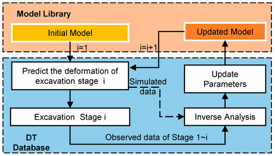 The structure of this paper is as follows: Section 2 provides an overview of the DT-based deep foundation pit modeling framework; Section 3 describes the parametric modeling of deep foundation pits and the inverse analysis algorithm for model updating; Section 4 outlines the architecture of the DT-based deep foundation pits monitoring system; Section 5 presents a case study of a deep foundation pit construction project; Section 6 provides a summary of the conclusions and outlines future work.