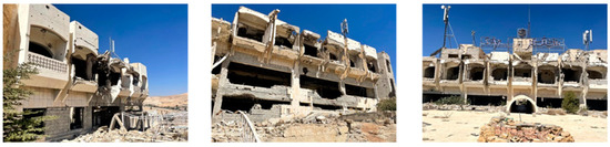 As the conflict gradually localized to specific regions after 2019, discernible trends in reconstruction have surfaced. Since then, there has been emphasis on prioritizing reconstruction in the residential sector, as presented by L. Khadour et al. (2023, 2022) [24,29], J. El Hage et al. (2023) [27], H. Ali Abdulrazaq et al. (2021) [32], C. Kousa. (2021) [31], M. Altaema. (2021) [30], and others from Table 1. Nevertheless, the tourism sector, as previously highlighted, holds significance as the third tributary of the Syrian economy. Therefore, it necessitates attention in the reconstruction efforts, and, in consequence, this study selected the case studies focusing on buildings within Syria’s tourism sector.
