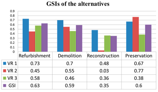 The final stage of this project methodology, crucial for model application and validation in specified scenarios, encompasses two fundamental objectives: (i) the calculation of indicator values (Section 3.3) and the Global Sustainability Index (GSI) for defined alternatives to determine optimal sustainability and (ii) assisting decision-makers in discerning strengths and weaknesses across economic, environmental, and social dimensions.