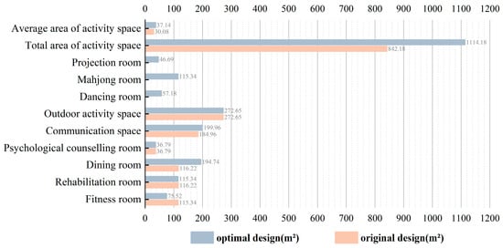 “Standards for design of care facilities for the aged” | There should be entertainment and fitness rooms in the senior building | Seats in dining room: nursing care: ≥40% of beds; 4 m2/seats non-nursing care: ≥70% of beds; ≥2.5 m2/seats | Area of entertainment and fitness rooms ≥ 2 m2/bed (person) | |