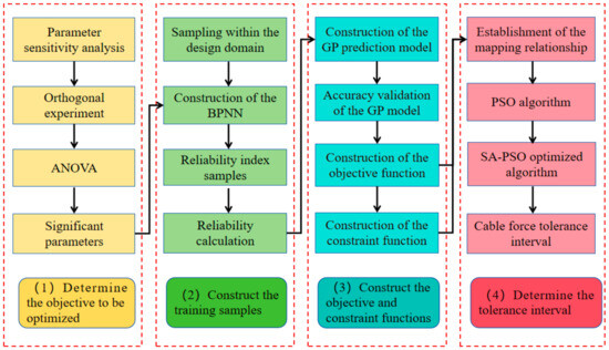 - This method integrates an orthogonal experimental variance analysis, BP neural networks, Gaussian process prediction, and the optimized particle swarm algorithm to precisely determine the allowable deviation during the construction phase of cables that significantly impact the structure while ensuring structural reliability. The approach enhances the compatibility and reliability of construction processes. In future research, it is anticipated that this method can be extended to the engineering practice of other long-span bridge types (such as multi-span cable-stayed bridges, suspension bridges, etc.) and other structural systems (such as tower crane equipment, supporting structures, etc.), improving the tolerance for displacement variations during construction.