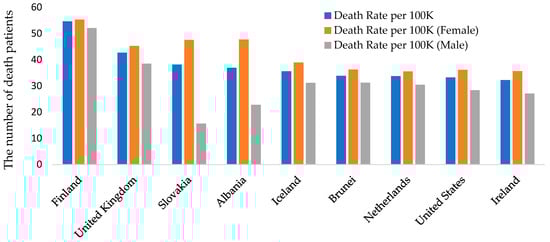 Figure 1 illustrates these disparities, with high-income nations facing a greater dementia mortality burden, while developing countries exhibit lower rates, partly influenced by underreporting. Gender differences are notable, with females experiencing higher death rates (e.g., Finland: 55.32 vs. 52.1 per 100,000 for males) and greater caregiving stress due to prolonged emotional strain [