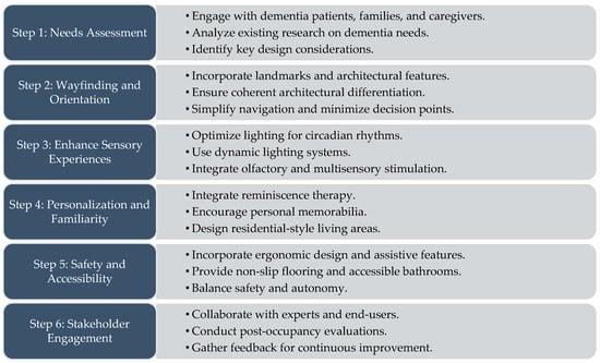 Figure 4 serves as a guide for architects, designers, and healthcare professionals to follow a structured approach in developing spaces that cater to the unique needs and challenges faced by dementia patients.
