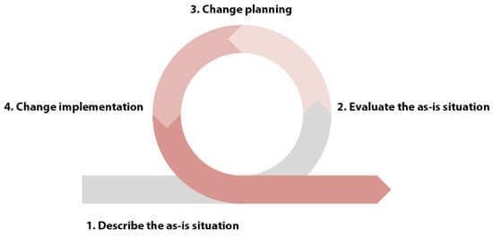 Figure 5 represents a simplified view of the detailed process depicted in Figure 3 by condensing multiple steps into one, such as Create RFC, Record RFC, and Review RFC condensing into Describe the situation as is. By embedding Figure 5’s generic change management process within Figure 2’s agile paradigm, the resulting combination of agile engineering and change management enables the development of Figure 6’s extended, iterative agile process model for engineering DTs.