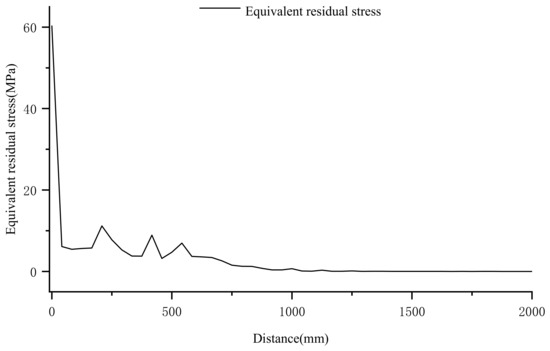 Additionally, it can be seen from Figure 16 that the residual stress is not symmetrically distributed along the central axis. This observation is consistent with the conclusions of Zheng [35].