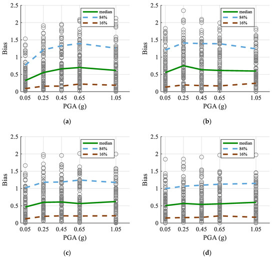 According to the distribution, mean, and variance of demand bias data, with the increase in ground motion intensity and amplitude scaling range, these statistical characteristic parameters of demand bias increase first and then stabilize. When the coefficient of variation is used to assess the demand bias, the variability of the demand bias first decreases and then stabilizes. These results indicate that increasing the range of the amplitude scaling factor does not improve the dispersion of the demand bias results.