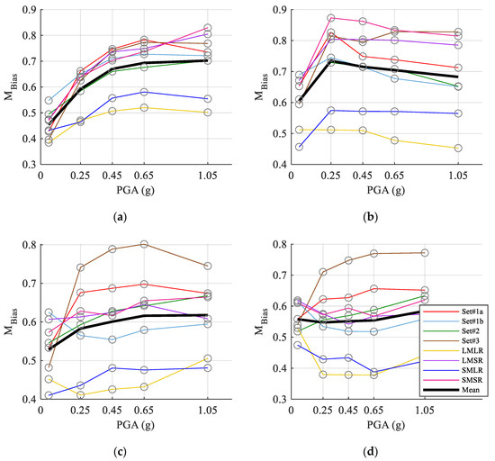 It should be noted that the above results are applicable to the types of structures considered in this study. The selection of ground motion record sets serves as a supplement to the current situation. Although general ground motion sets do not require hazard analysis and can be used directly, they may not match the seismic hazard characteristics of the target area, and they should be used with caution. The focus of this paper on the amplitude scaling bias and uncertainty of universal ground motion record sets aims to facilitate their better utilization.