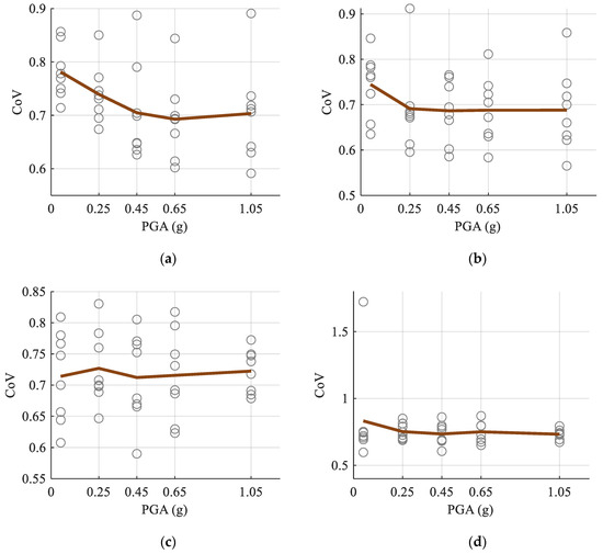 represent the median and logarithmic standard deviation of the seismic demand of the structure under the action of a specific ground motion intensity measure. To perform probabilistic seismic demand analysis using Equation (1), it is necessary to determine the seismic engineering demand parameters