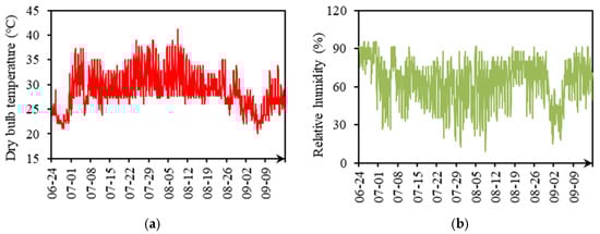 Meteorological and occupancy data presentation. (a) Dry bulb temperature. (b) Relative humidity. (c) Solar radiation. (d) Occupancy data.