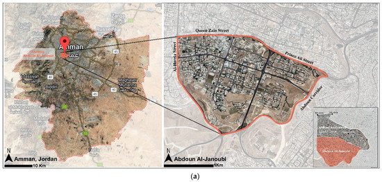 Amman, the capital city of Jordan, has undergone a remarkable transformation over the past seventy years, evolving from a small ancient village into the nation’s most densely populated metropolis. This dramatic urban expansion has been primarily driven by fluctuating population growth, with Amman’s development seamlessly extending into nearby Al-Zarqa. It now accommodates approximately four million residents [1,2,3]. The rapid pace of urbanization, however, has intensified socio-economic disparities, adversely affecting the quality of life for Amman’s diverse inhabitants [4]. Understanding Amman’s complex urban landscape is essential to addressing the challenges of accessibility to essential services.