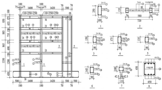 - In this frame–shear wall structure, the majority of the seismic forces are borne by the shear wall, and the concentration of plastic deformation at each level is less obvious compared to frame structures. The cumulative damage and the crushing of concrete on one side of the shear wall base in the test reduced the seismic performance of the entire structure. It is recommended that action be taken to increase the horizontal distribution of rebars and raise the concrete strength grade at the base of the shear wall, to enhance the energy dissipation capacity of the structure.