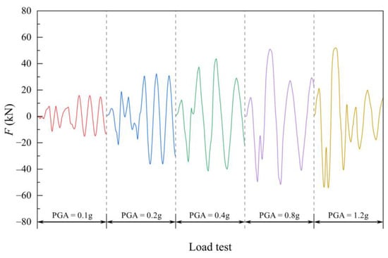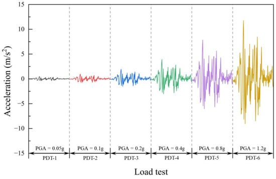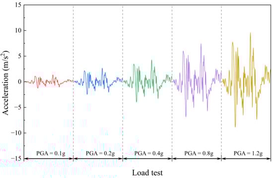- When the PGA was 0.05 g and 0.1 g, the specimen remained in the elastic stage without visible cracks.