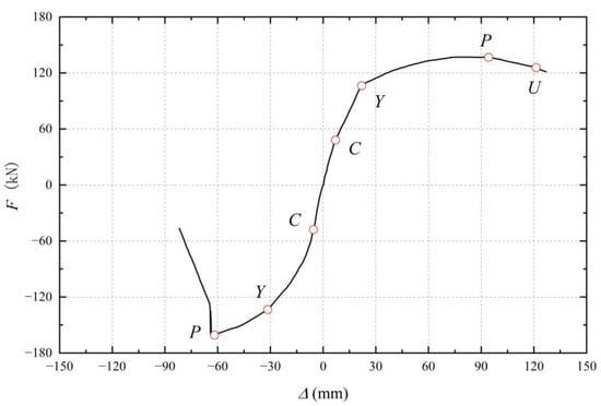 - During the second phase, as the positive displacement at the top floor reached 123 mm, there was a sharp increase in structural deformation, notably evident in shear sliding. Then, the concrete at the base of column C5 was severely crushed, and the bottom web of the shear wall exhibited concrete spalling. This event indicated the complete failure of the specimen.