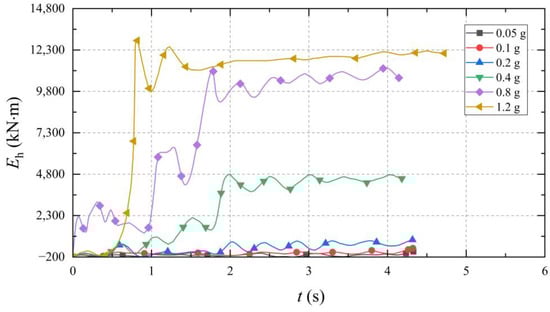 - The acceleration of the excitation wave and response wave reaches peak values at the same time, but the peak acceleration of the excitation wave does not occur at the same time as the peak values of the restoring force response. As structural damage accumulates, the natural period of the specimen extends, and the time taken for the restoring force response to reach maximum values increasingly coincides with the time of the input seismic wave’s peak acceleration.