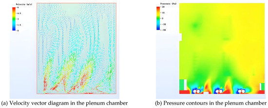 Figure 11a illustrates the distribution range of airflow volume at the perforated floor grilles under different raised floor heights. As shown, at a raised floor height of 300 mm, the airflow volume range was −0.044 m