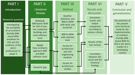 As expressed by the research question in the previous part, the present study includes a technical and a social component. The technical aspect of the study requires a clear understanding of existing research on BIM-based BEM for EER regarding the used tools, potentialities, and challenges. On the other hand, the social part aims to uncover the scale of integrating the human component within BIM and BEM for EER-based studies.