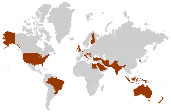 An additional analyis is centered around the references presenting case studies subjected to a semi-automated simulation within Revit or ArchiCAD. The distribution of these references according to the geographical location of the studied case studies is represented on a map (see Figure 4). By frequency, the principal case studies are located in the Middle East and South Asia, with India as the most frequent location (eight case studies from 38). Concerning the nature of these case studies, residential use was dominant (see Figure 3) with 66%, with the other 34% representing mainly public buildings and a few commercial case studies. Nonetheless, this only sometimes suggests that all residential case studies are of a small scale, as they represent 54% of the total case studies. Various residential case studies represented mid-size and large buildings, while all non-residential buildings exceeded the small scale.
