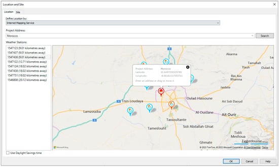 Revit provides the user with available weather stations online [] with two types of climate data: TMY weather stations (starting with 59###) and stations from Autodesk’s climate server based on the years 2004 and 2006 []. ArchiCAD downloads climate data from the Strusoft Climate Server based on data from the NOAA-CIRES Climate Diagnostics Center []. Nonetheless, it also allows climate data to be uploaded in various file formats. In many EER cases, this possibility provides more accuracy than relying on weather stations.