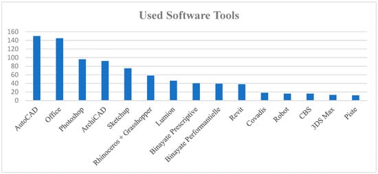 Two surveys were conducted to assess the Marrakech AECO market regarding its potentialities and challenges for adopting BIM-based BEM workflows for EER. The first survey targeted architecture and civil engineering students to assess future AECO professionals’ use of BIM and BEM tools. Architecture students targeted by the survey were from the 3rd to the 6th year. As civil engineering is a master degree specialization, civil engineering studentswere from the 4th and 5th year. A total of 165 students were surveyed, with 53% being from the architecture curriculum and 47% in the masters of civil engineering. The survey tackled broader aspects about the BIM, BEM, and EER, but results regarding used software tools were the only outcome included in the present study.
