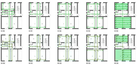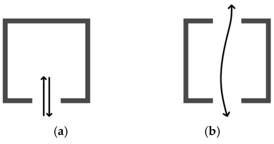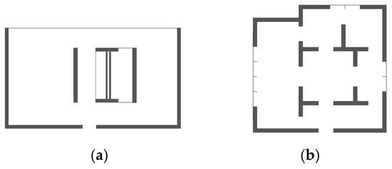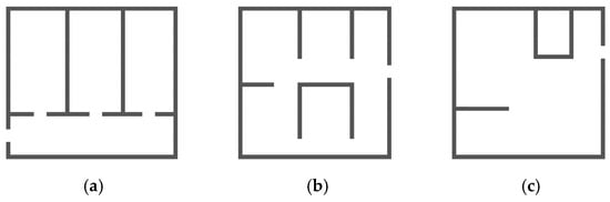 In terms of social impact, this typology creates more opportunities for interaction between users (between residents themselves and/or between visitors and residents), which can be seen as a good thing if it is desired; otherwise, it can also lead to conflict. How integrated (accessible) or segregated individual spaces within the home should be often depends on specific cultural backgrounds and social circumstances/norms and should be left to the user. However, integration is seen as the key through which we can understand the social context of architecture and show how buildings and places function on a collective level. This applies to both buildings and individual spaces within a building []. Furthermore, according to Hanson [], space organized for social purposes should be seen neither as purely continuous nor as purely bounded but as a transformation of the spatial continuum through a system of boundaries and permeabilities into an effective space organized for human purposes. This statement was based on an investigation within the framework of the ‘Social logic of space’ [], in which elementary buildings were defined as closed or open cells (the open segment of space can be traversed, while the closed cell is considered a dead end) (Figure 3).