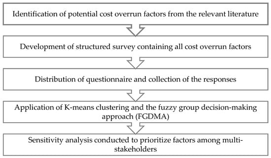 Therefore, this study identified three critical research gaps in cost management practices within construction in Egypt as a model. These gaps are as follows: (1) systematic identification and clustering of cost overrun factors in the construction industry, considering its unique economic, managerial, operational, and external challenges; (2) integration of advanced analytical methodologies to address the challenges inherent in data-driven and stakeholder-based evaluations; and (3) employing advanced tools to compare and prioritize risks based on stakeholder perspectives. By addressing these gaps, this study identified critical causes of cost overrun and developed a structured framework for prioritizing each stakeholder. The following are this study’s specific contributions: