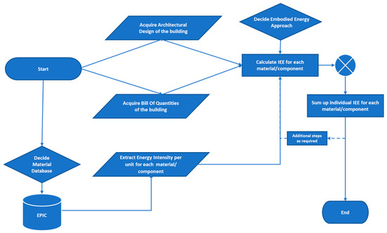 - Select the embodied energy assessment approach: decisions are made based on a summary of the literature and previous studies;
