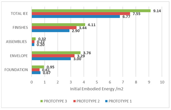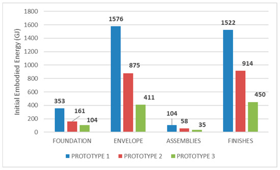 4.2. Comparison 1: Initial Embodied Energy Across the Three Prototypes
