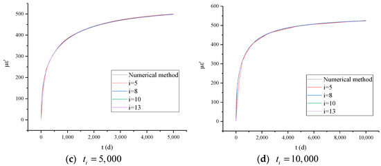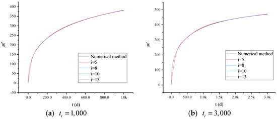 Therefore, with the increase in calculation time, the gap between the calculation efficiency of the methods in this study and that of the numerical method will become larger and larger. The methods in this study are more suitable for large creep calculations.