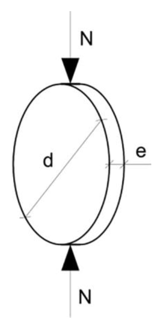 Figure 6, these cores were segmented into smaller pieces with equal height-to-diameter ratios and tested in a press to gauge the average compressive strength across different cross-sectional layers. However, this technique is primarily suitable for large structures that have endured long-term high temperatures, as extensive drilling in slender members like columns or beams could adversely impact their structural integrity. Additionally, the paper introduces the Fire Behavior Test (FBTest), conducted on 1.5 cm thick discs cut perpendicularly from the cores. This method assesses the water absorption and splitting tensile strength of concrete, applying a compressive force parallel to the disc diameter. The tensile strength is calculated using a specific formula provided in the study, which is as follows: