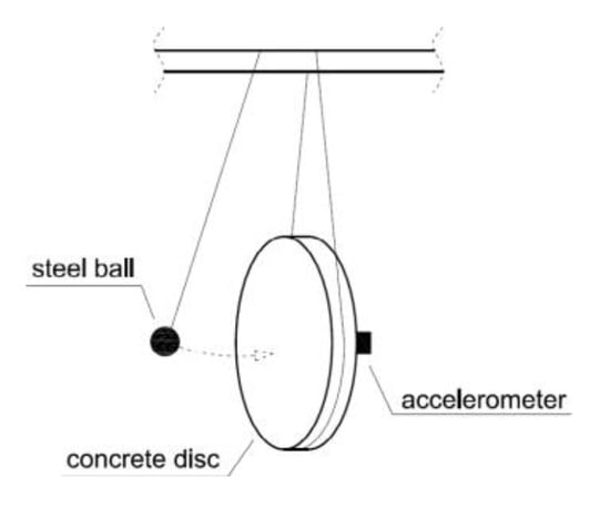 The Ed test, conducted on 2.5 cm thick discs from concrete cores, measures the Ed based on how the specimen vibrates in response to a steel ball impact. A piezoelectric accelerometer attached to the disc captures the vibration frequency, with the Ed value decreasing as the concrete deteriorates. For example, in the FBTest, measurements from consecutive slices are analyzed to estimate the extent of concrete damage.