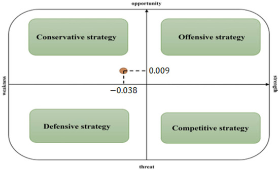 In line with the analysis, the weights of each item presented to the experts should be calculated as strengths and weaknesses as well as opportunities and threats. For this purpose, these weights were calculated using the AHP method. First, by distributing a paired questionnaire among the experts included in the research, the weights of each item have been calculated, and these values can be seen in Table 6. First, a pair study was conducted for the strengths, and based on the studies based on the relationships presented in the previous section for the inconsistency rate, the inconsistency rate of this matrix was calculated to be around 3%, which is within the standard and permissible range.