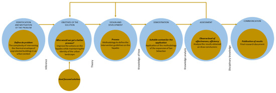 The specific objectives of this research are detailed as follows: establishing a replicable methodology for safeguarding the identity of historic centers through the development of flexible yet rigorous intervention criteria tailored to the unique characteristics of facade modifications. This includes identifying vulnerable buildings in the Ensanche of San Sebastián through detailed analyses of stylistic, material, and chromatic elements and evaluating their protection under current heritage regulations, particularly the Special Plan for the Protection of Urban Built Heritage (PEPPUC). A systematic approach is adopted to classify buildings into typological families using parameterized digital models, enabling structured data collection and automated analysis to guide intervention strategies. Additionally, prototypes are developed to assess building vulnerability, focusing on the impact of exterior thermal insulation systems (ETISs) and ventilated facades on architectural composition. This study aims to establish specific technical guidelines for intervention, including tailored technical sheets for each building, and to collaborate with the Department of Urban Planning of San Sebastián to integrate findings into local policies. Emphasis is also placed on raising public awareness about heritage conservation, fostering appreciation for everyday heritage through targeted educational and community activities. Furthermore, this research explores digital twin technology as a tool for simulation and analysis, enhancing decision-making processes and promoting interdisciplinary collaboration in urban heritage conservation efforts.