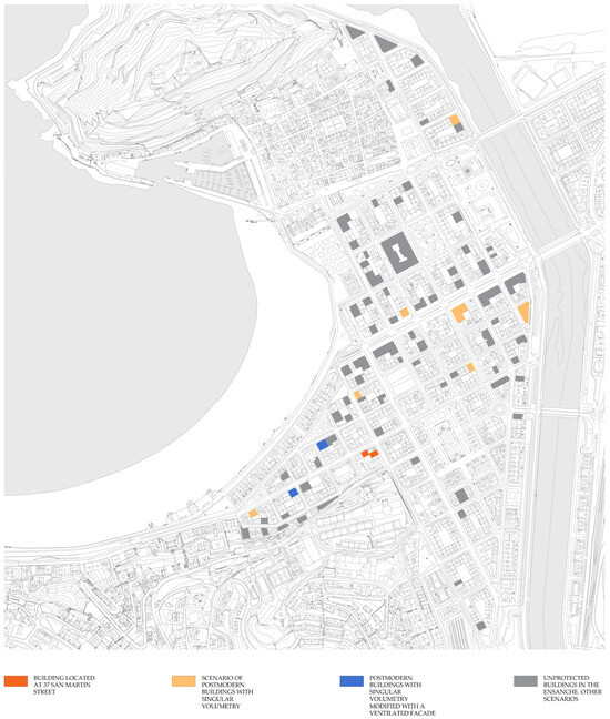 The methodology employed was validated in a sample of 105 unprotected buildings in the Ensanche, of which only 10 were originally postmodern buildings with matching unique or singular volumetry, and two of them had already been altered at the beginning of this research. This limited representation of such a scenario constitutes a restriction of the study, highlighting the need to expand the sample and apply the methodology in other neighborhoods. Expanding the sample will not only strengthen the validity of the criteria used but also allow for the evaluation of their applicability in diverse urban contexts.