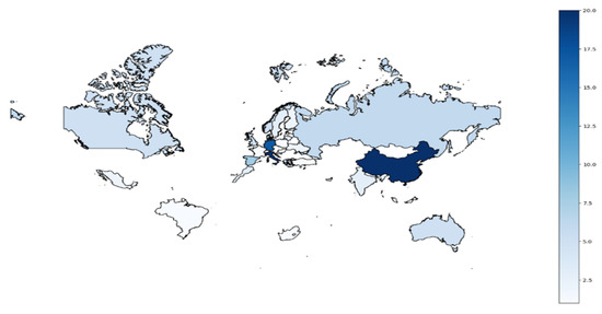 Figure 4 highlights the geographical distribution of publications on digital twins applied to building energy efficiency, revealing a significant concentration in a few leading countries. China emerges as the dominant contributor, reflecting substantial investments in digital technologies and the need to optimize energy management in a rapidly urbanizing context. European countries, such as Italy, Germany, and Spain, also play a pivotal role, driven by their strong focus on sustainability and compliance with strict EU regulations.