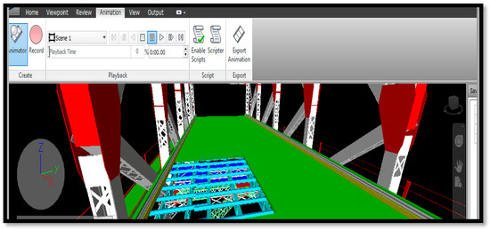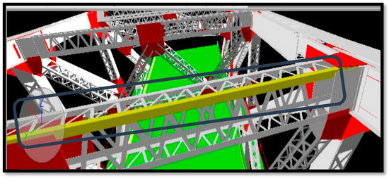 Furthermore, several practices have been implemented on the Bridge model in order to obtain a more comprehensive view of the expected outcomes of regular maintenance tasks, as well as to avoid uncertainties in the work field. To achieve this, the technology of 4D simulation was used, and it was very effective and dynamic in showing the opportunities and constraints that surround the maintenance work field considering the time factor as shown in Figure 13.