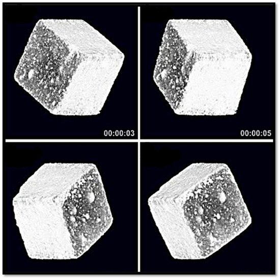 The CT scan imaging reveals that the consolidant has completely coated the stone surfaces and has been evenly distributed within the pores, as shown in Figure 17. The uniform dispersion on the surfaces and among the stone grains resulted in an enhancement of the stone’s mechanical characteristics. Furthermore, the CT scan pictures demonstrated the uniformity of the nanocomposite material composed of Nano-silica/TEOS polymer and its similarity to the composition of the sandstone.