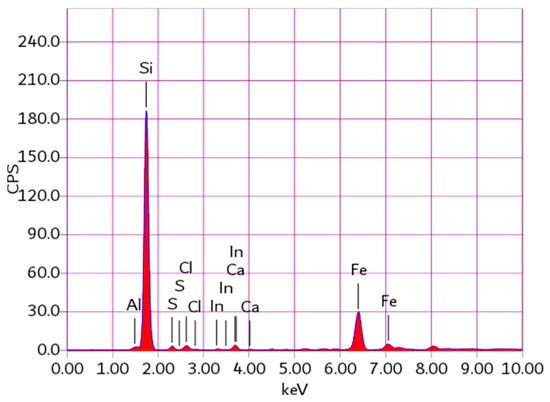 The objective of X-Ray Fluorescence analysis is to determine the elemental composition of the sandstone. The findings indicated the presence of proportions of aluminum (Al), quartz (Si), chloride (Cl), calcium (Ca), iron oxide (Fe), and small amounts of sulfur (S), which are outlined in Table 1 and visually presented in Figure 19.