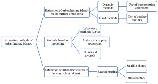 Various methods have been developed to model the magnitude and intensity of the UHI phenomenon. These methods are categorized into two main groups: experimental and laboratory approaches [,].
