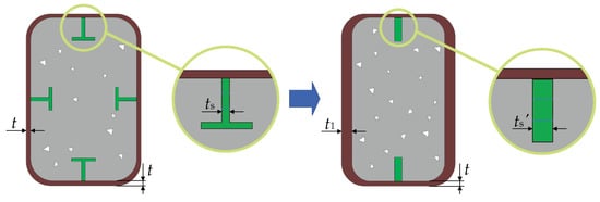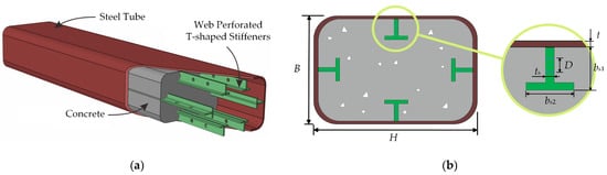 - Chen, S.Z.; Liu, Y.; Luo, J.H.; Gao, S.Y. Experimental and numerical analysis on rectangular concrete-filled steel tubular columns with T-shaped stiffeners. J. Build. Eng. 2022, 45, 103510. [Google Scholar] [CrossRef]